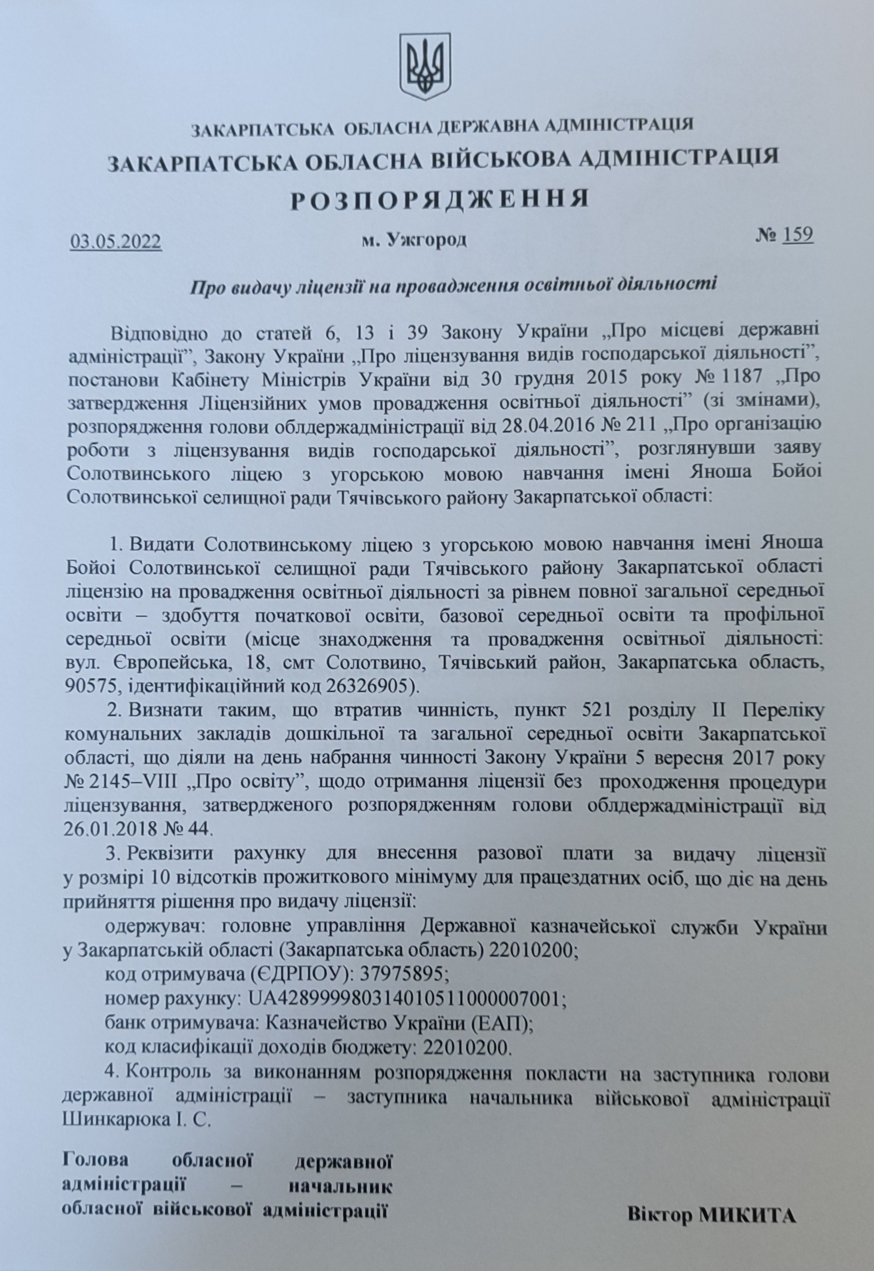 Солотвинський ліцей з угорською мовою навчання імені Яноша Бойоі Солотвинської селищної ради Тячівського району Закарпатської області